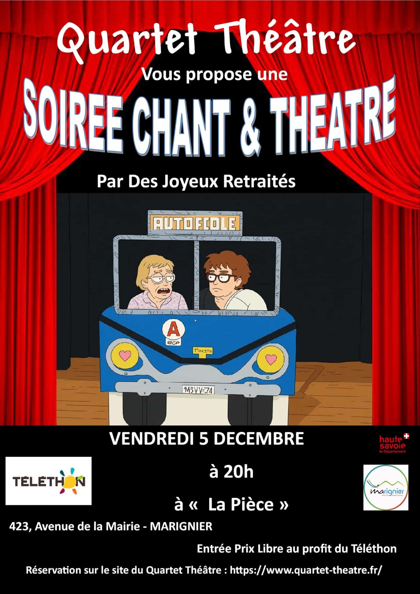 Rendez-vous le vendredi 05 décembre à 20h, à La Pièce, 423 Avenue de la Mairie, pour une soirée chant et théâtre par Les Joyeux Retraités et le Quartet Théâtre.