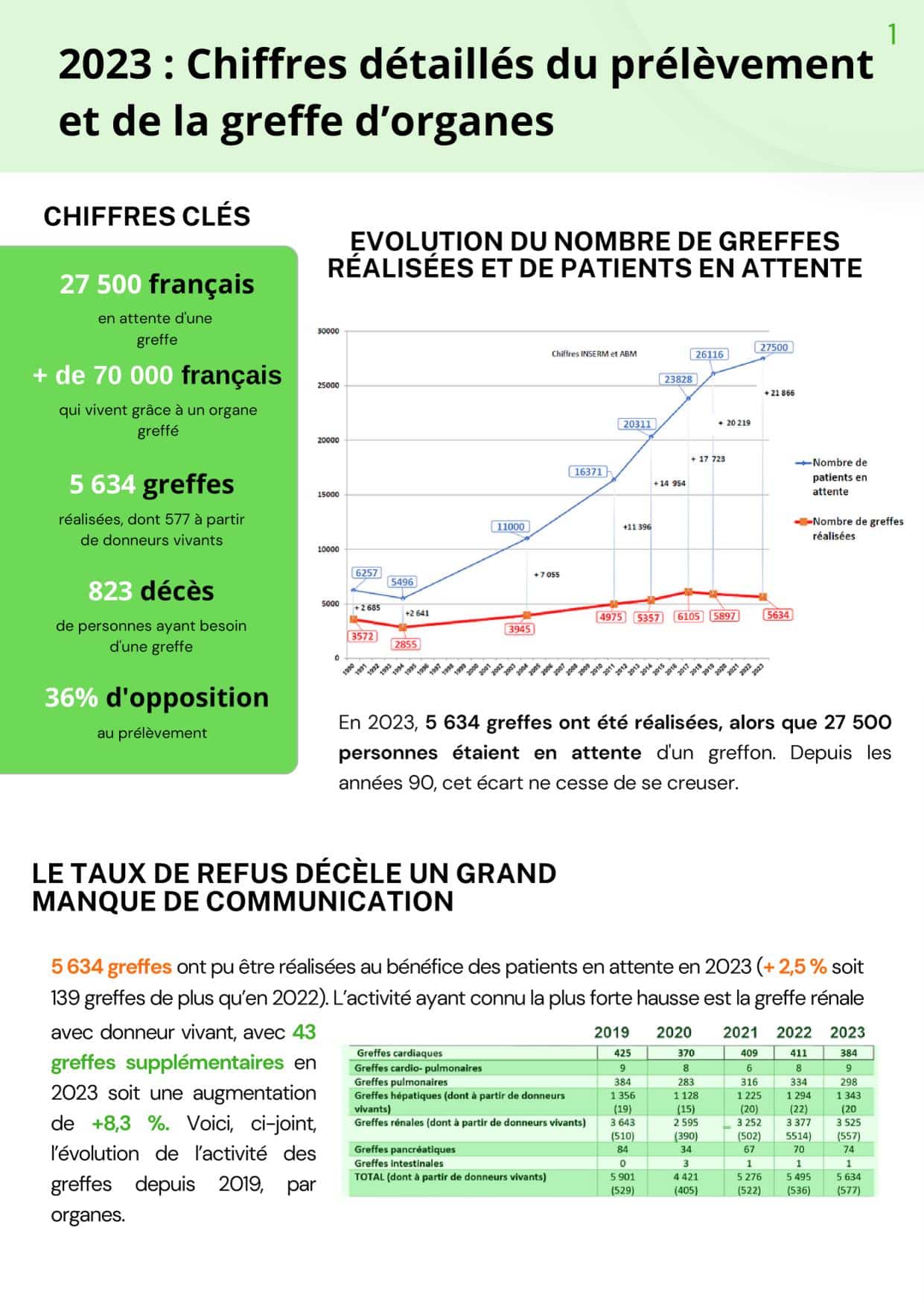 Chiffres 2023 du prélèvement et de la greffe d’organes page 1