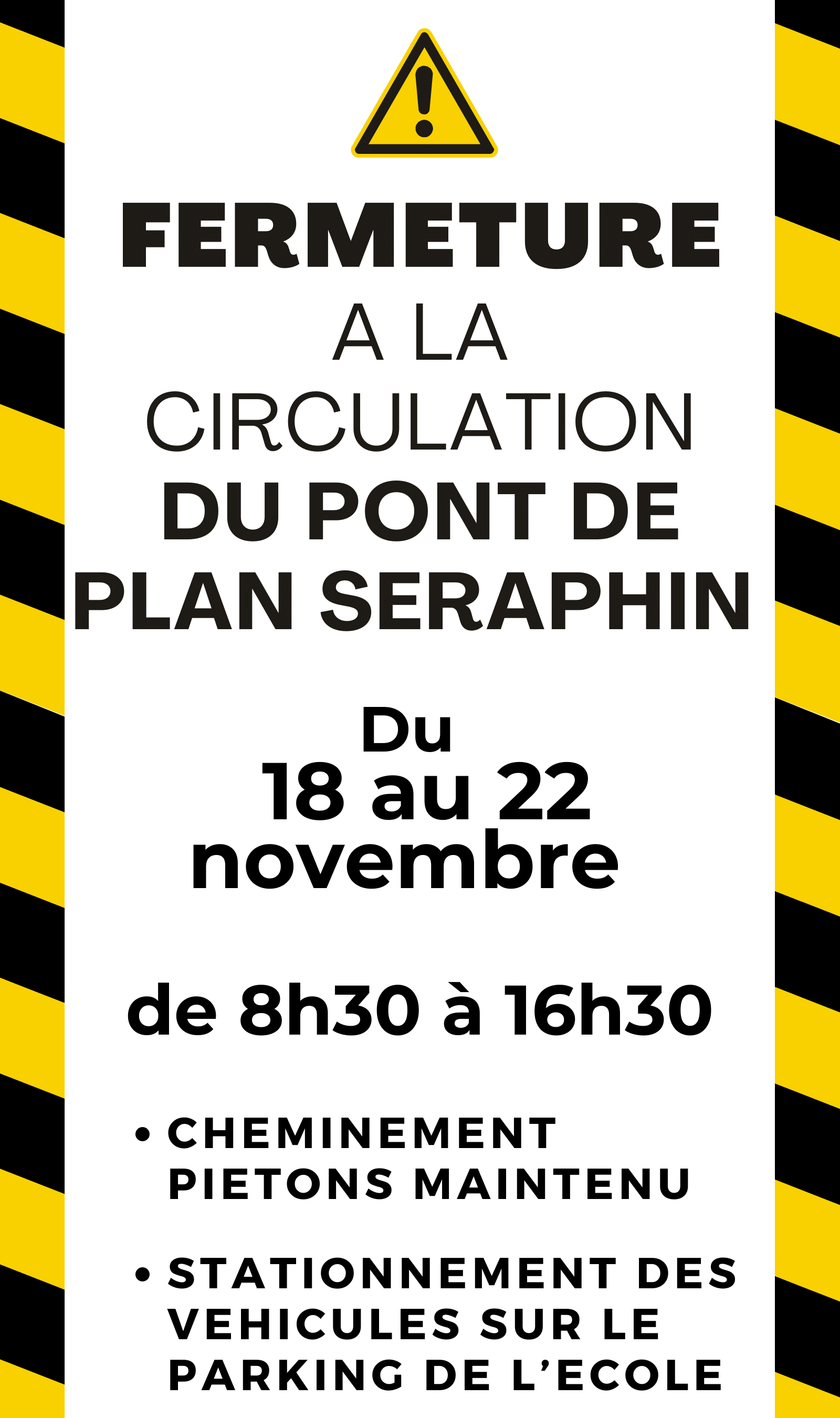 TRAVAUX: FERMETURE à la circulation du PONT DE PLAN SERAPHIN